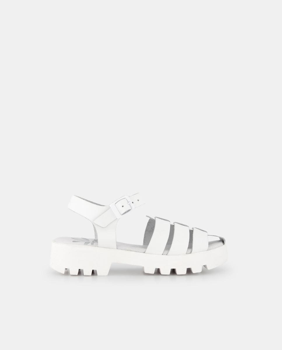 Sandalias abiertas de niña tipo cangrejeras en piel con cierre de hebilla