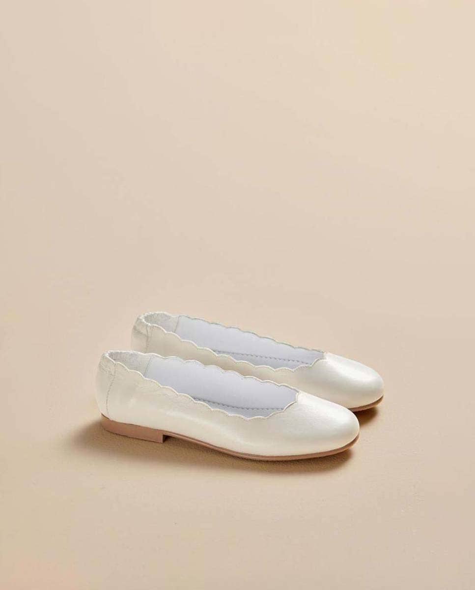 Bailarinas de niña en piel con detalle de ondas y suela de goma