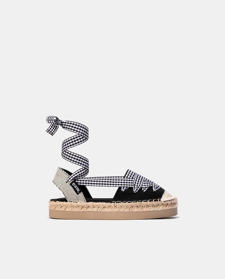 Alpargatas de niña destalonadas en algodón con cierre de cintas al tobillo
