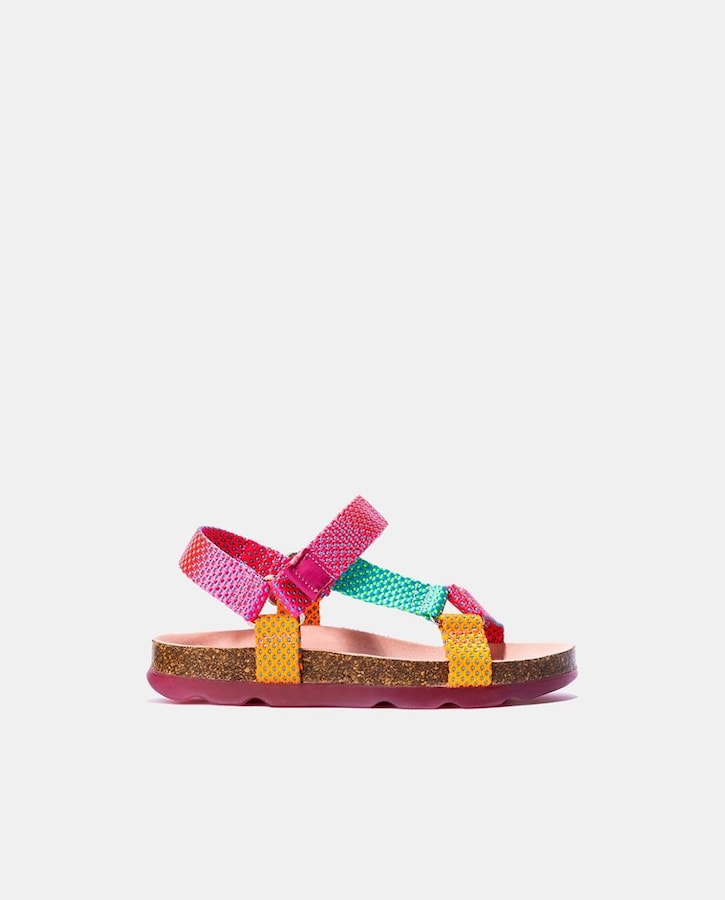 Sandalias abiertas de niña con tiras multicolor y cierre adherente