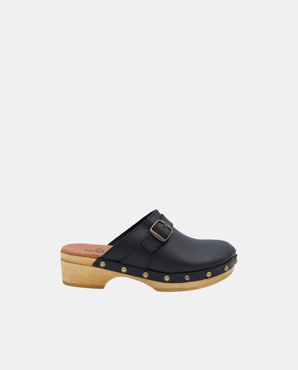 Zuecos de niña en piel con detalle de hebilla y tacón bloque