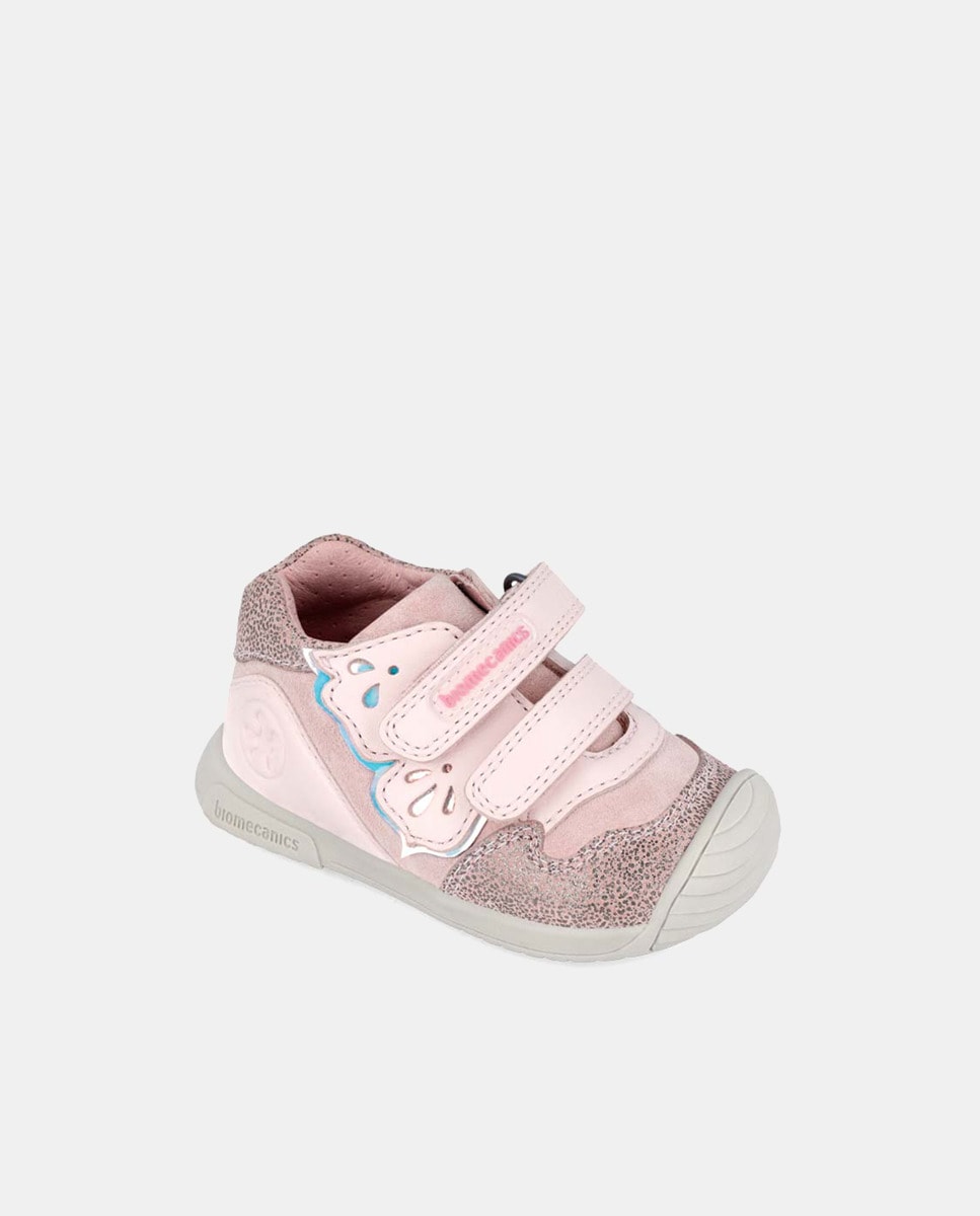 Botin mariposa de bebé niña en piel con puntera reforzada