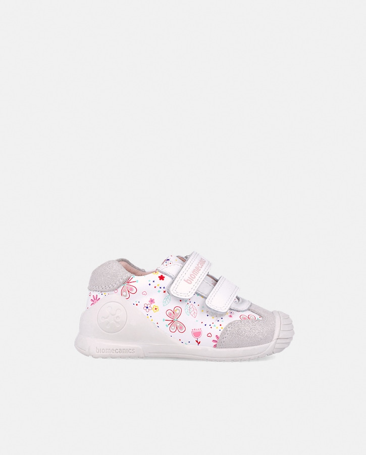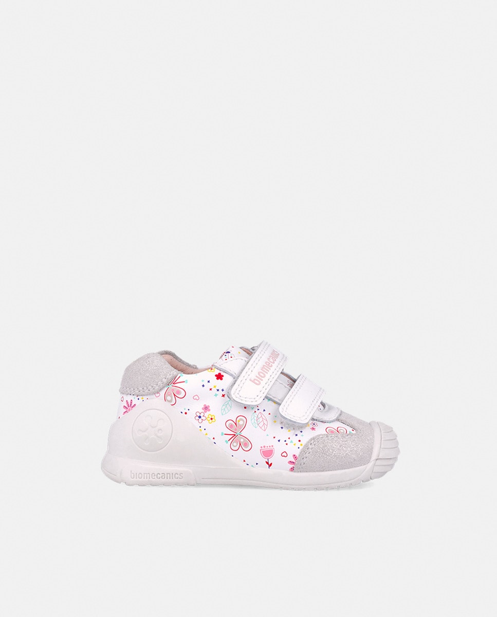 Zapatillas casual de bebé niña en piel con puntera reforzada