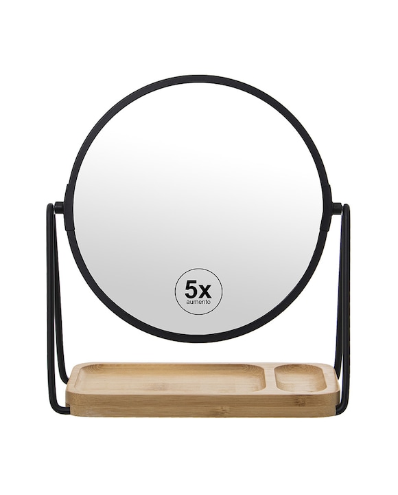 Espejo aumento 2 caras x1, x5 metal negro con base bambu
