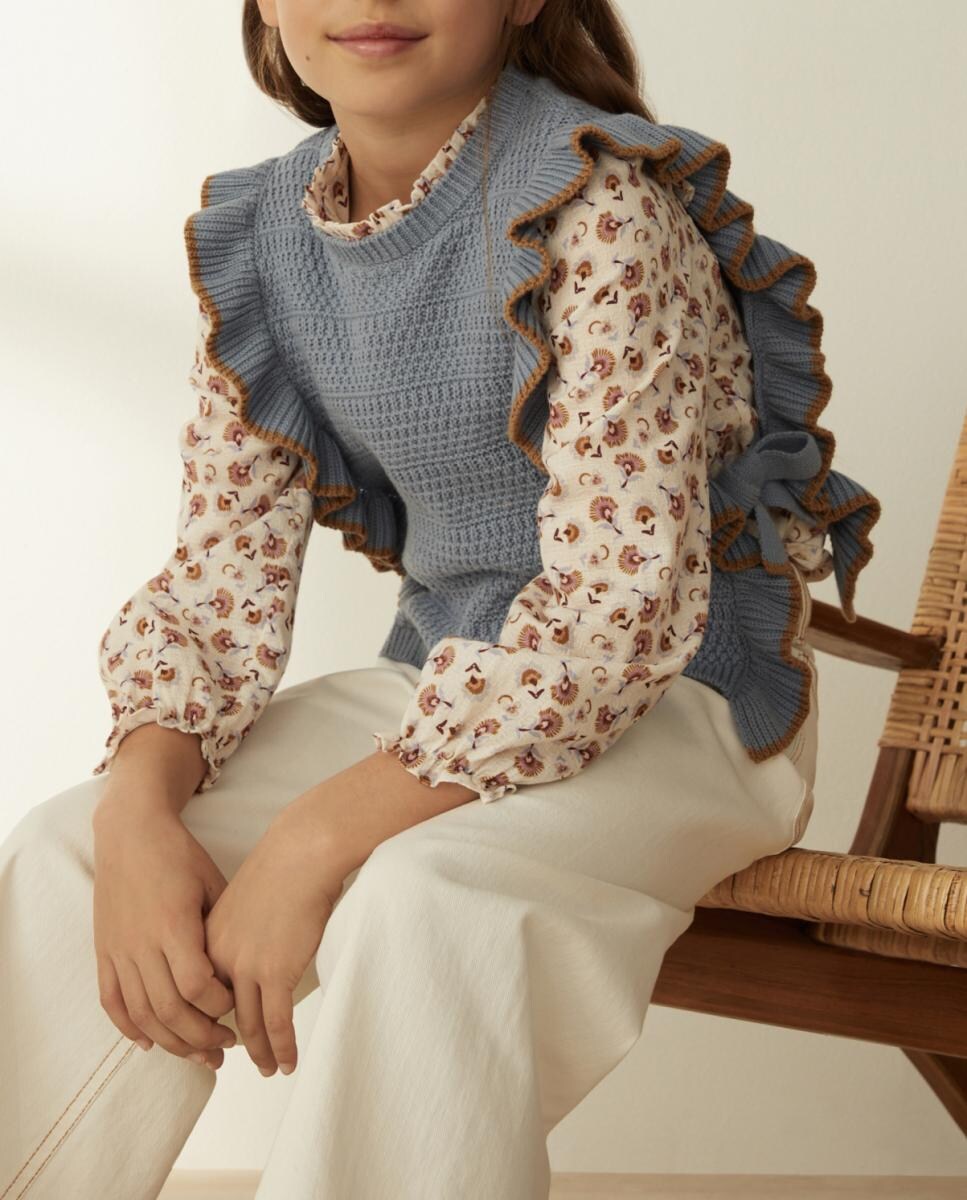 Chaleco de punto de niña con volantes