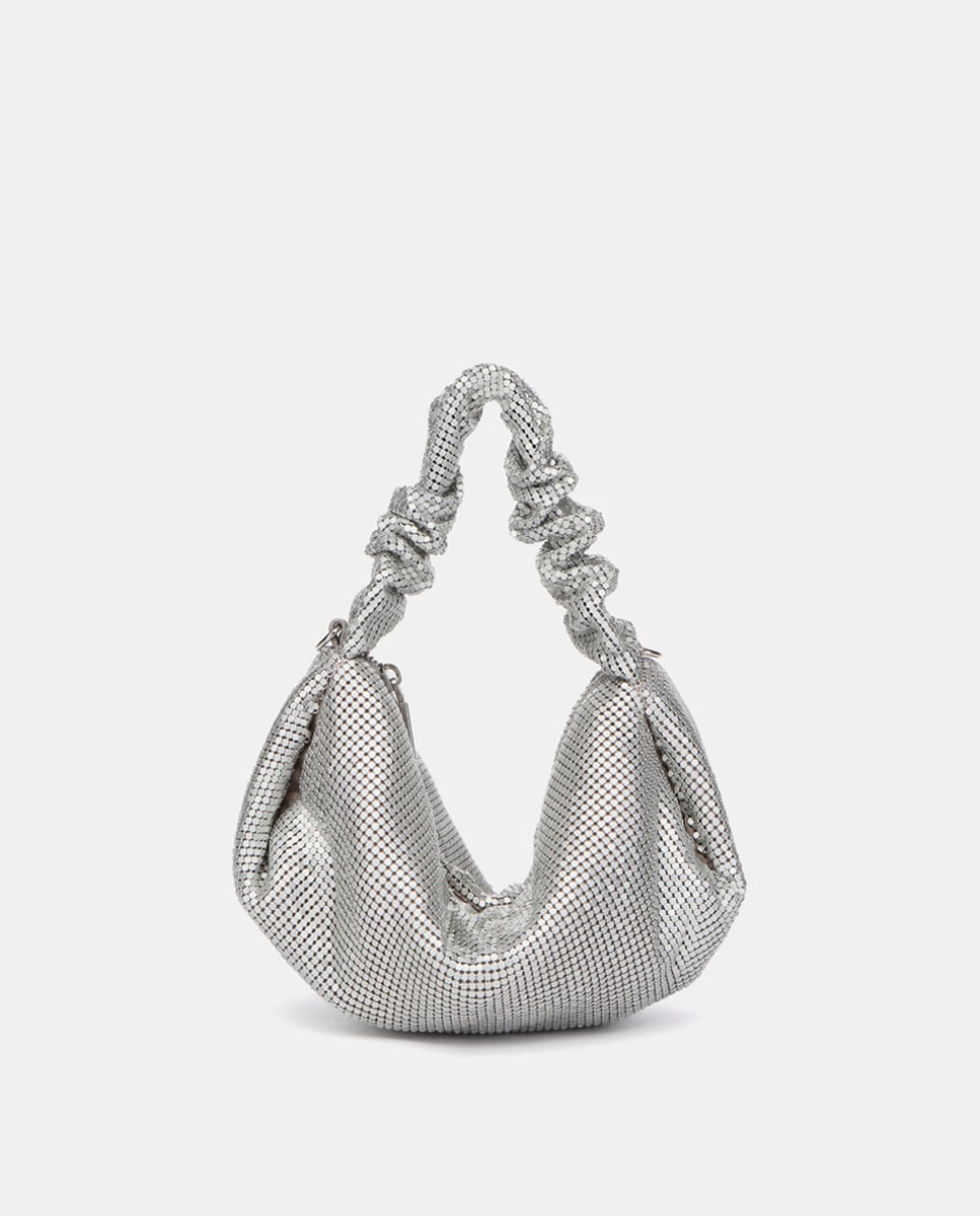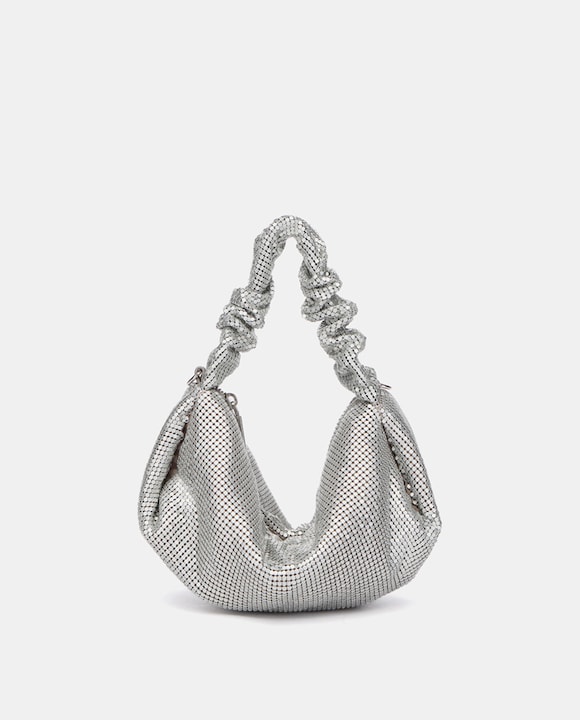 Bolso de mano de malla metálica en plateado