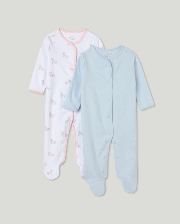 Pack de dos peleles largos de bebé niña de unicornios y estrellas