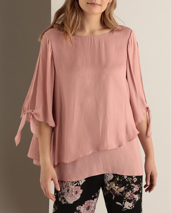 Blusa de mujer talla grande con capas y escote redondo