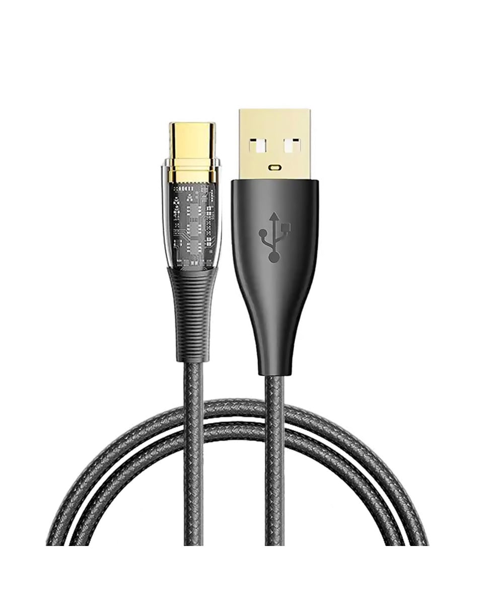 Cable USB 2.0 AM a USB-C PD20W de 6A. 1,2 metros, OD 4mm. Con luz led