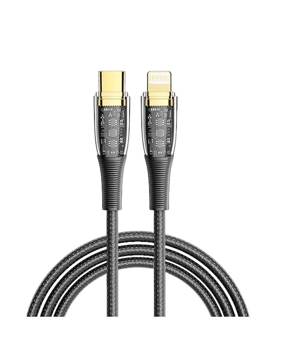 Cable USB-C a Lightning PD20W. Longitud: 2 metros, OD 3,5mm. Con luz led