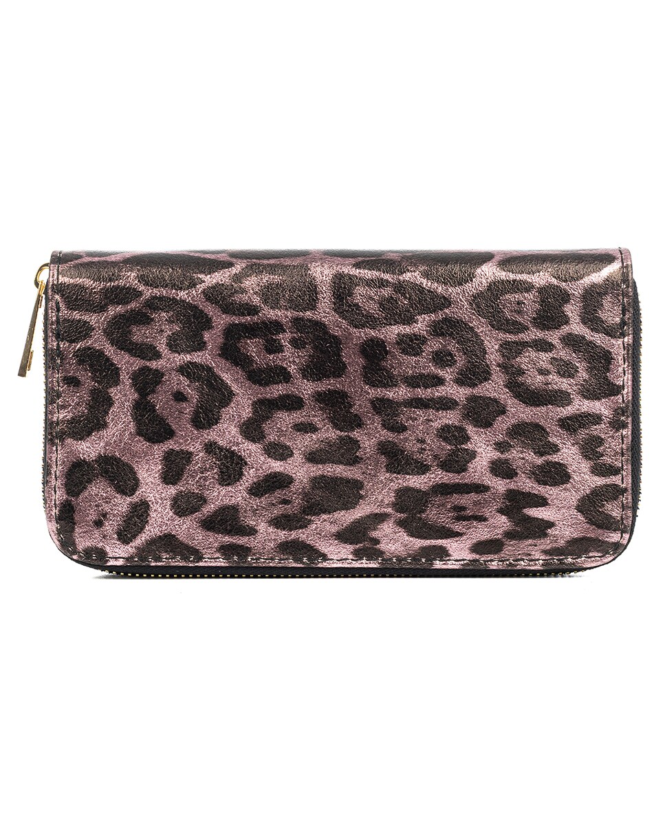 Cartera mujer en piel auténtica Gamuza, con estampado animal print leopardo lacada brillante.