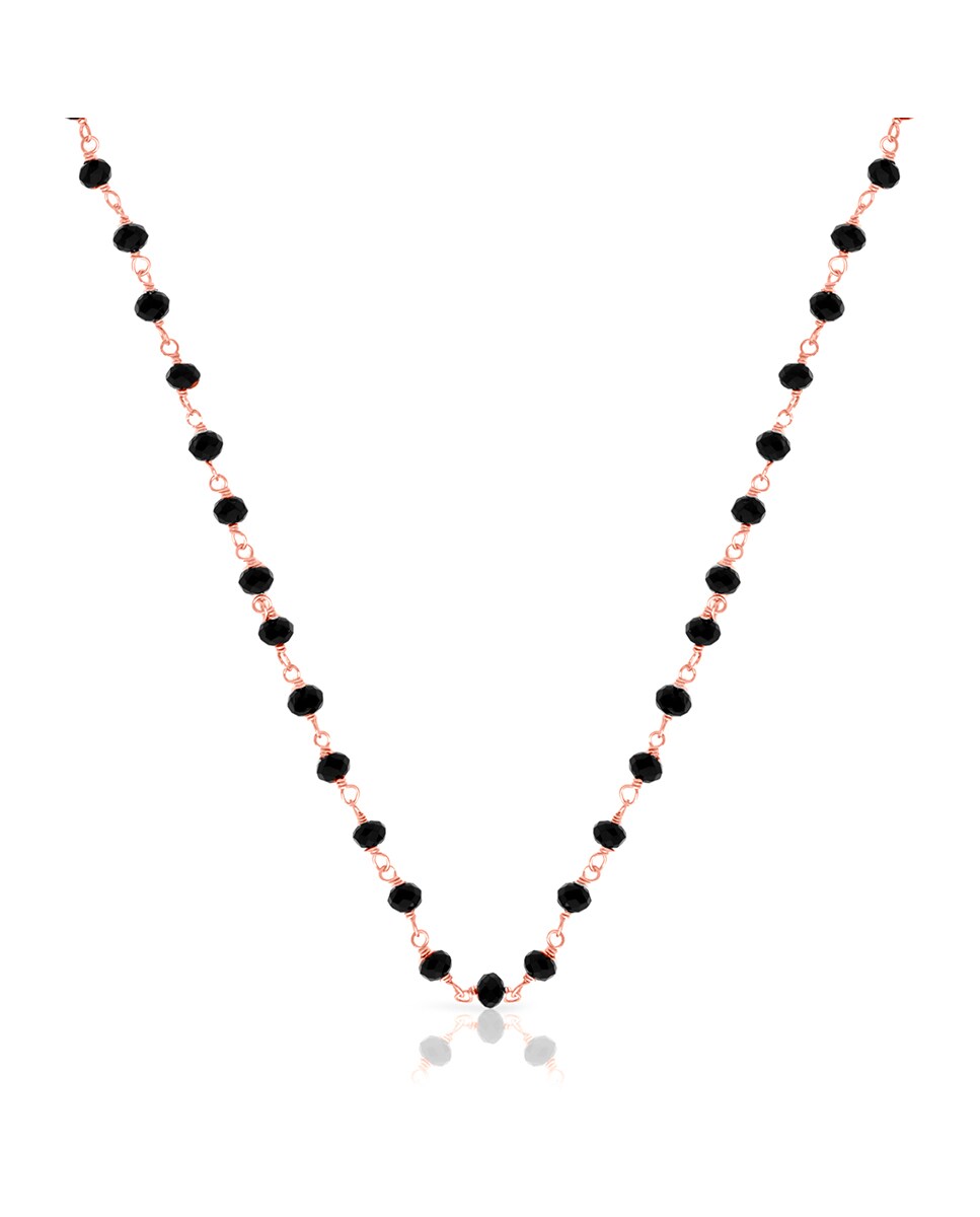 Cadena de Plata de Ley 925 con cuentas en circonita negra natural.