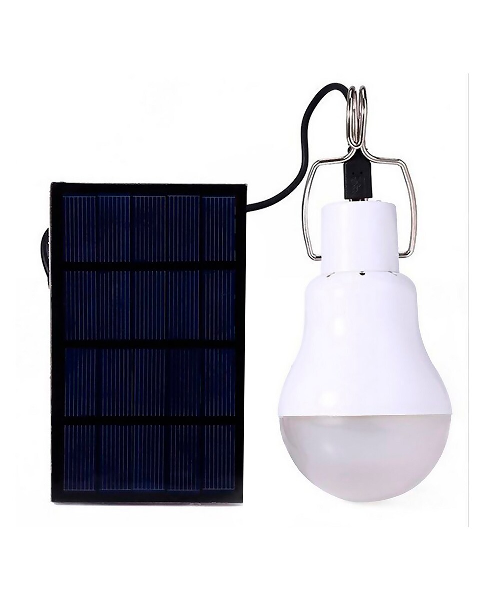 Bombilla LED con carga DC y solar. Luz blanca con 200lm y batería recargable de 400mAh, 5W con hasta 16 horas de uso.