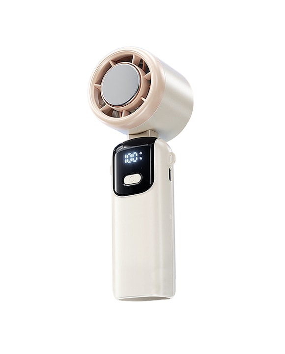 Mini ventilador de mano recargable con 5 velocidades principales y panel refrigerador.