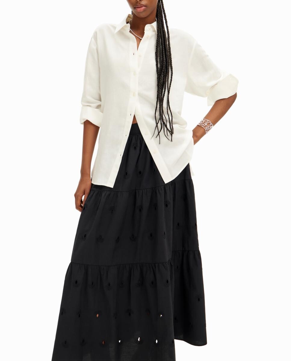 Falda midi bordado suizo de mujer
