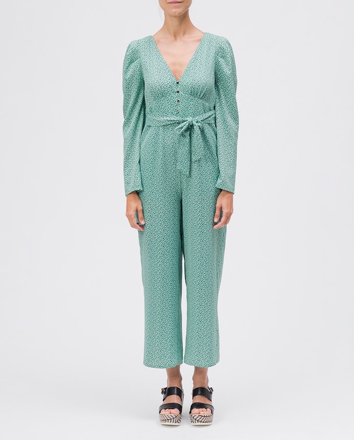 Mono largo escote pico corte cintura