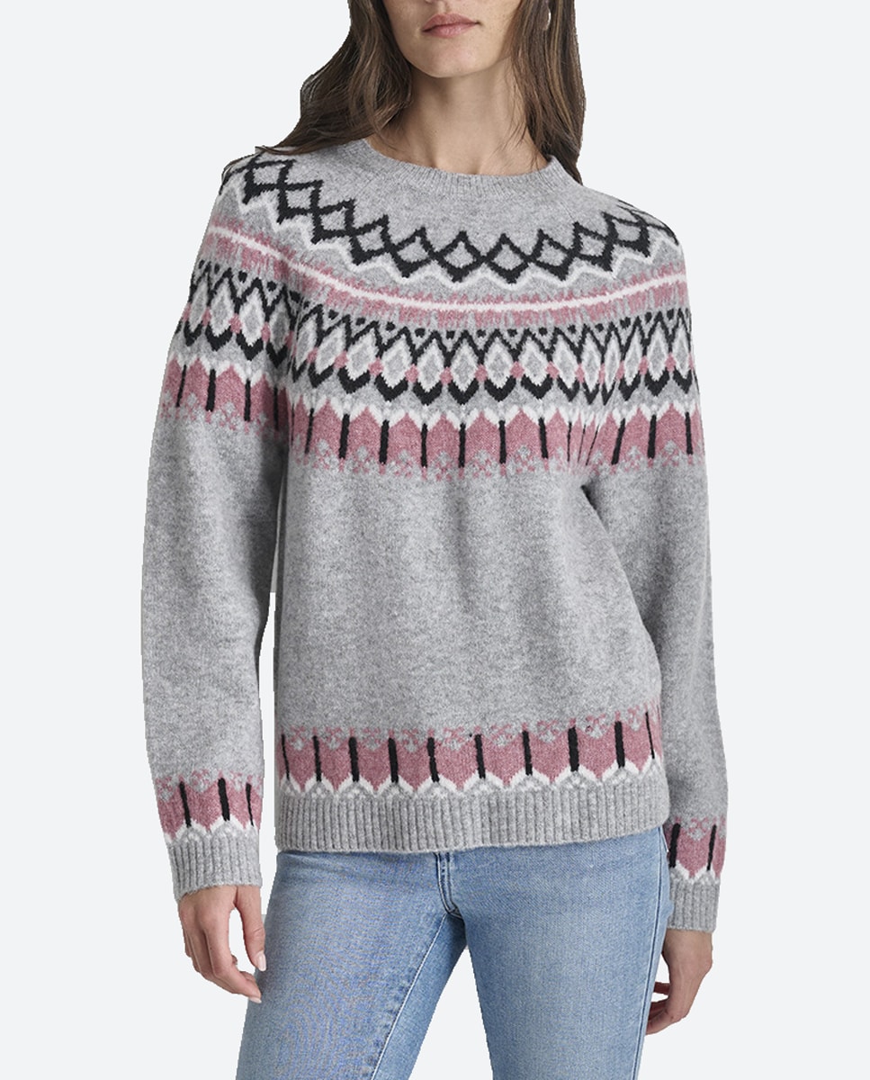 Jersey de mujer cenefas jacquard y manga larga raglan
