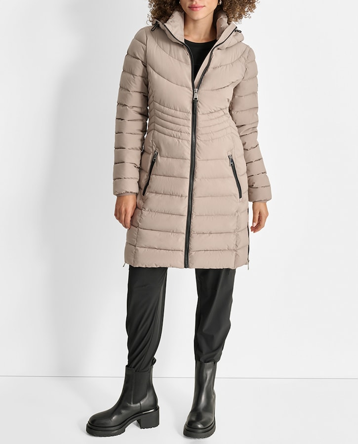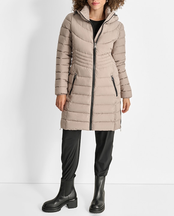 Plumífero de mujer 3/4 con capucha y mangas largas