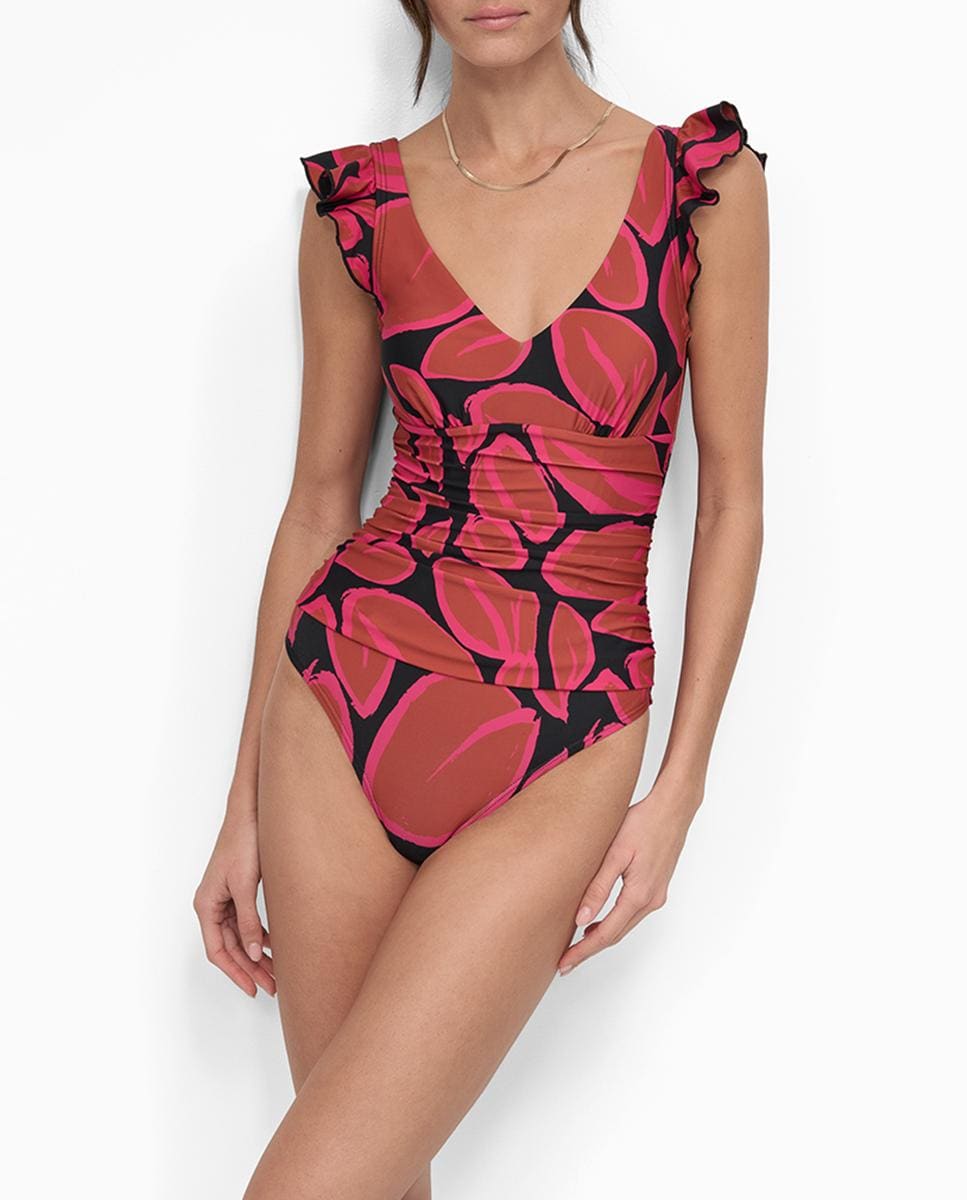 Bañador de mujer con frunces, escote en pico y mangas con volantes
