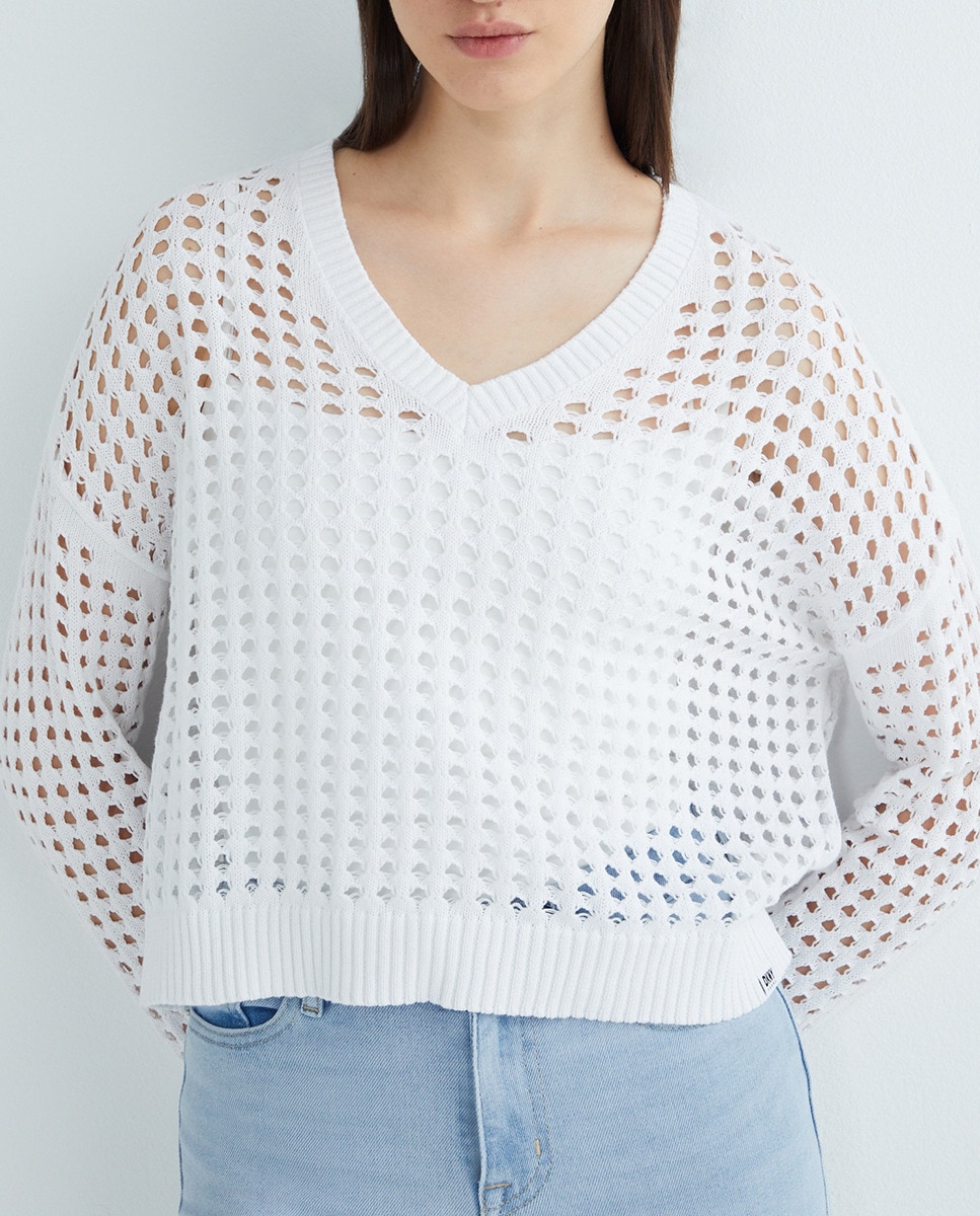 Jersey de mujer con cuello en pico y manga larga