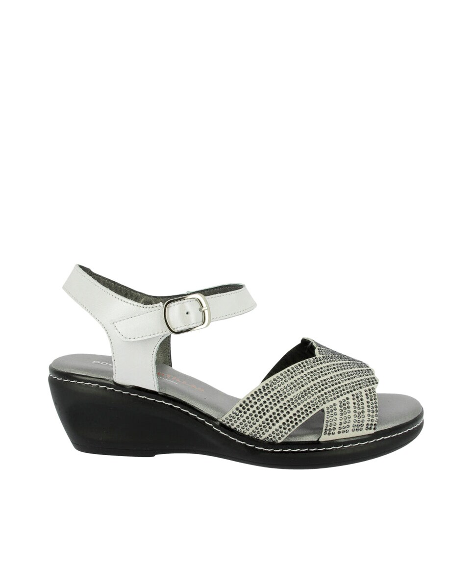 Sandalia mujer cuña brillos