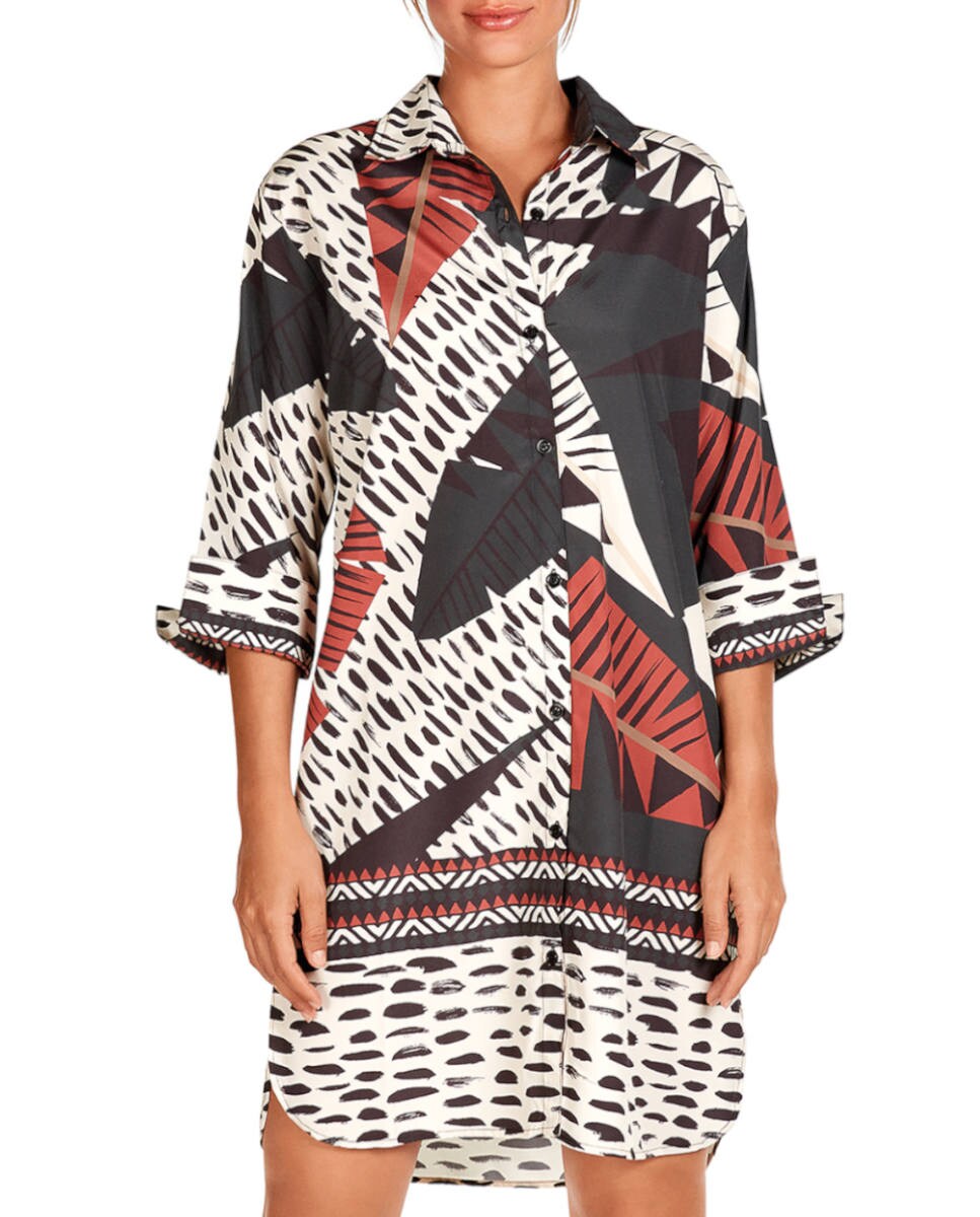 Vestido de mujer camisero corto con estampado poscionado abotonado