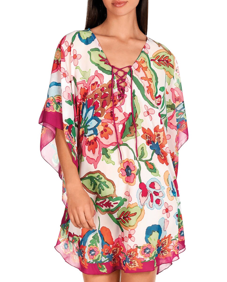 Kaftán de mujer corto con estampado posicionado