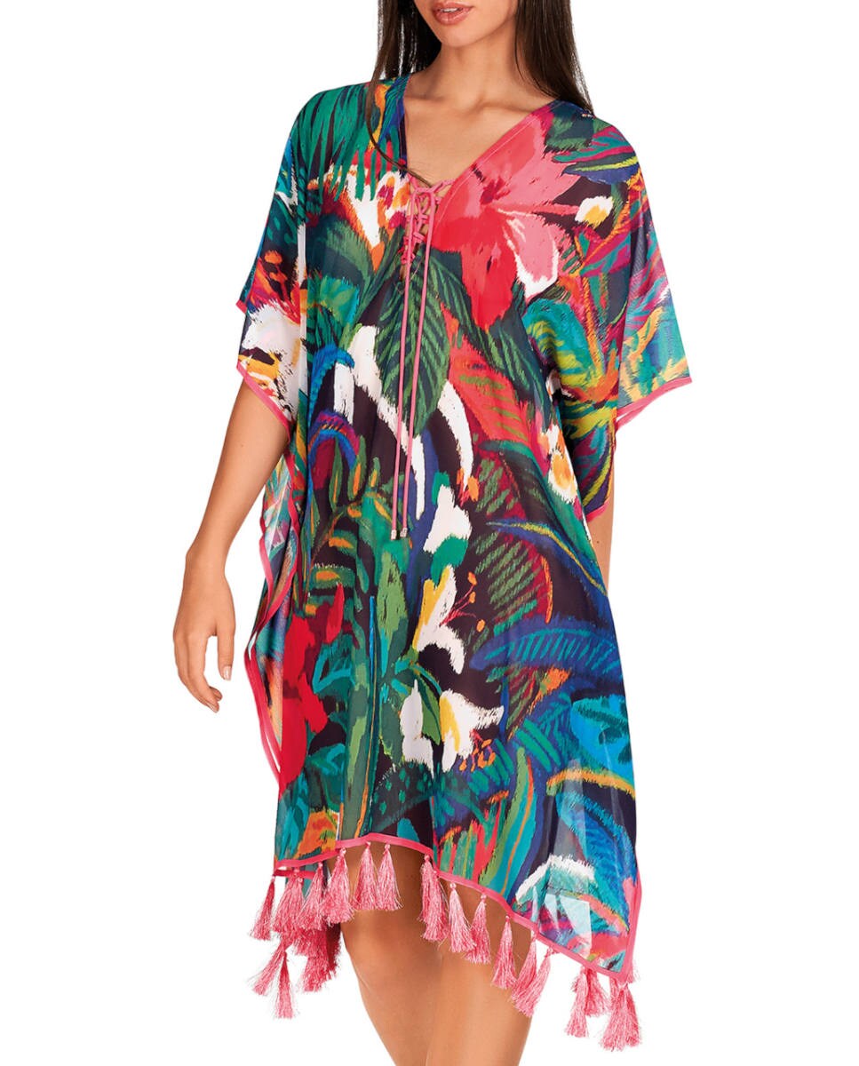 Kaftán de mujer corto estampado con flecos