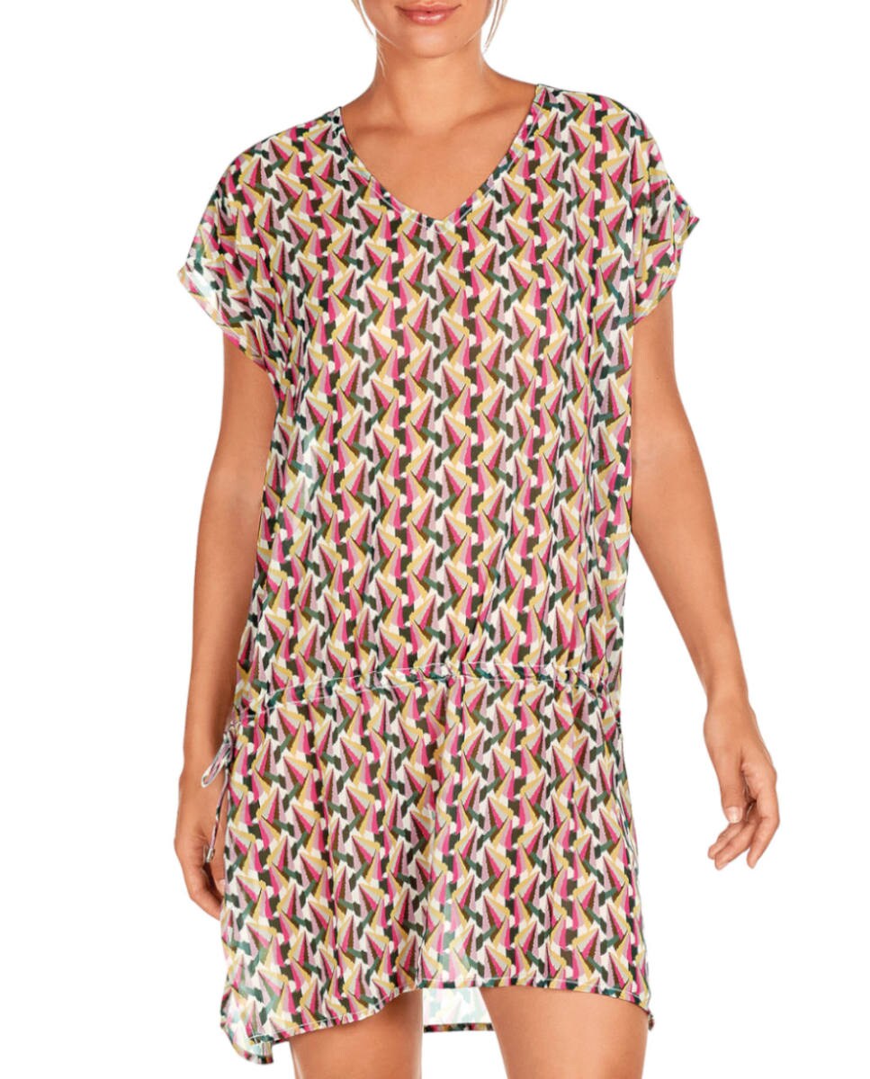 Kaftán de mujer corto estampado con frunce en cintura