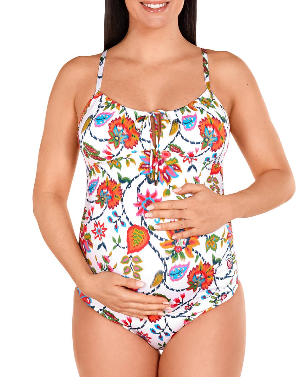 Bañador de premamá estampado flores con lazo en escote
