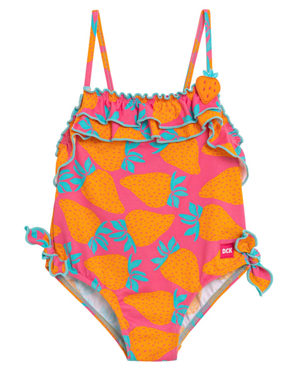 Bañador de bebé estampado frutas con volante en escote