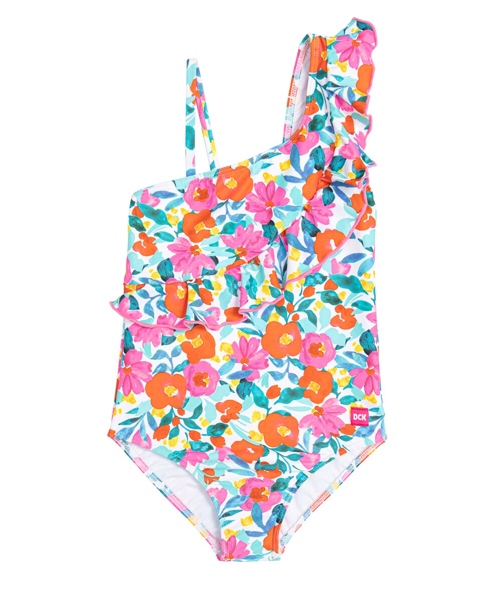 Bañador niña asimétrico con flores acuareladas