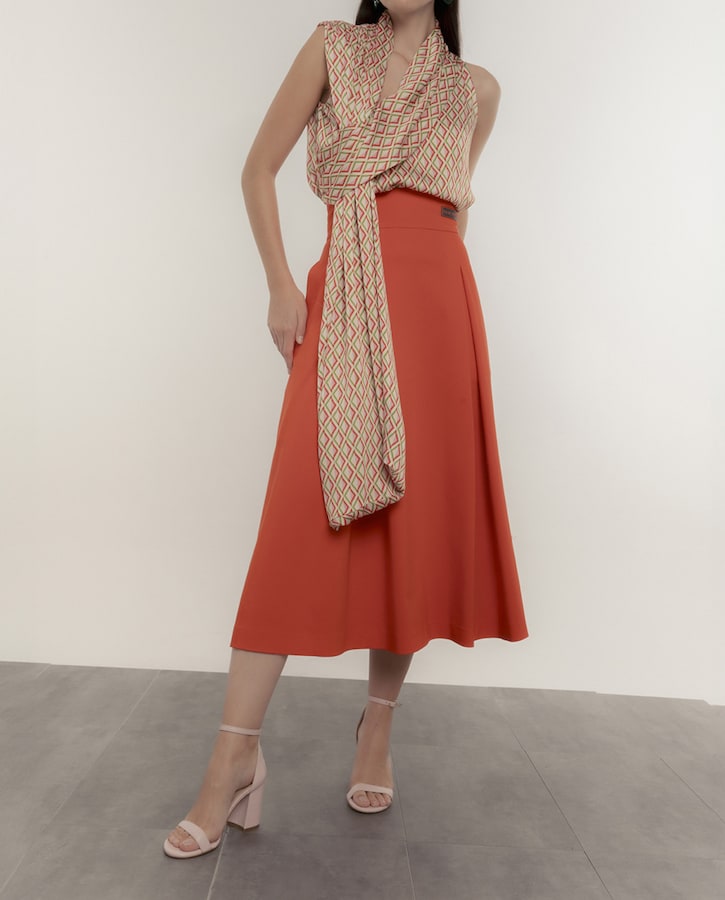 Falda midi lazo espalda en tejido algodón