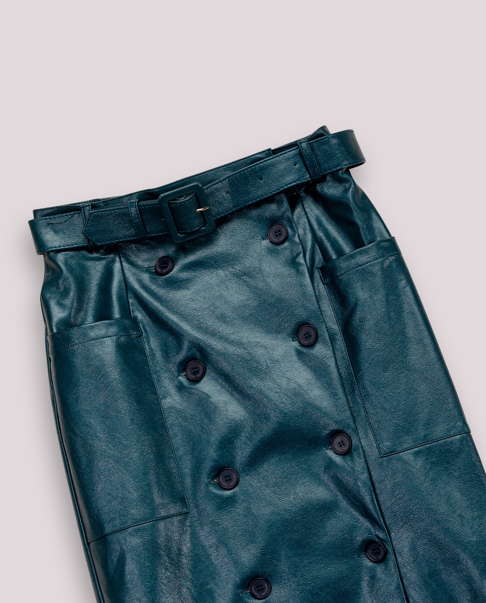 Falda midi efecto piel Bella
