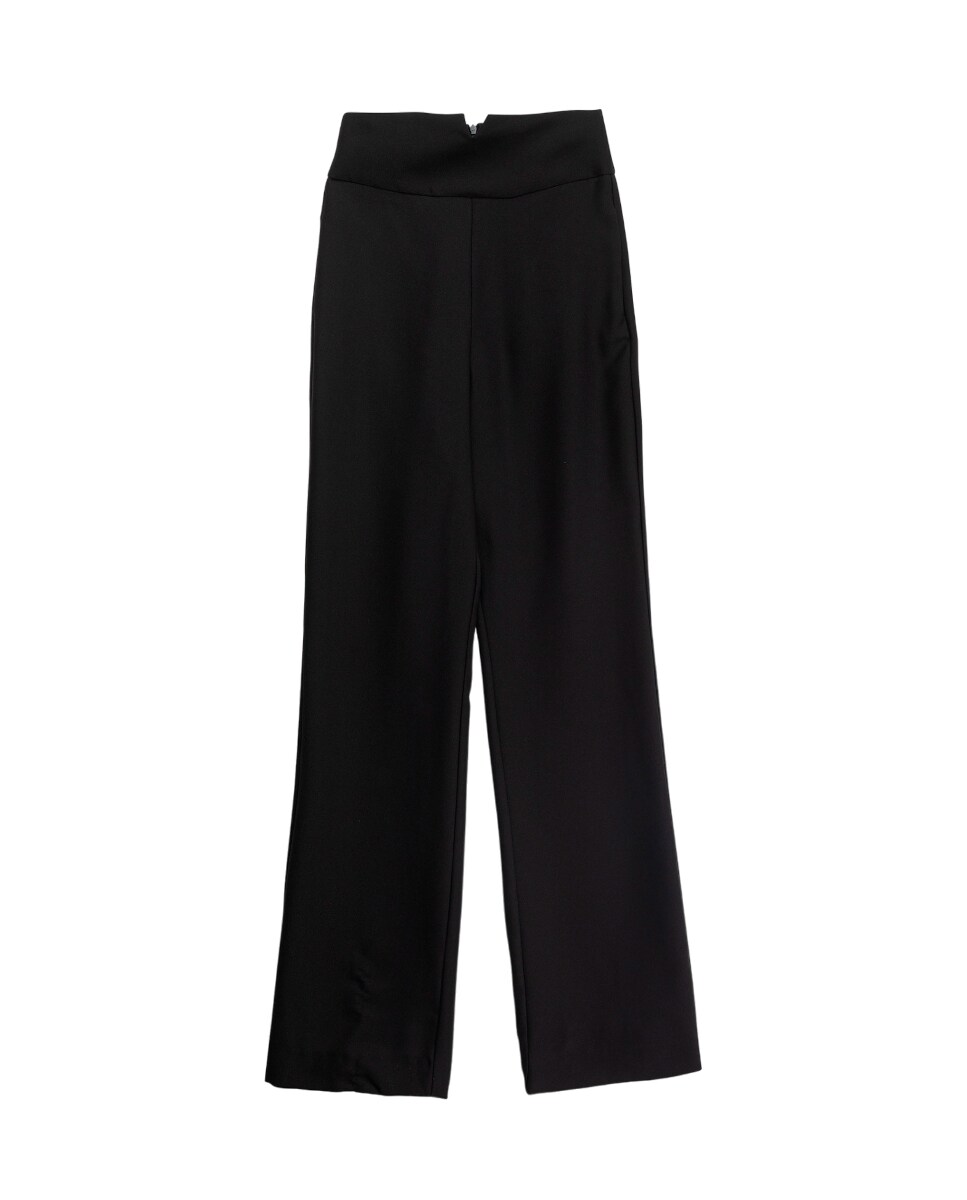 Pantalón largo recto con detalle en la cinturilla negro crepe