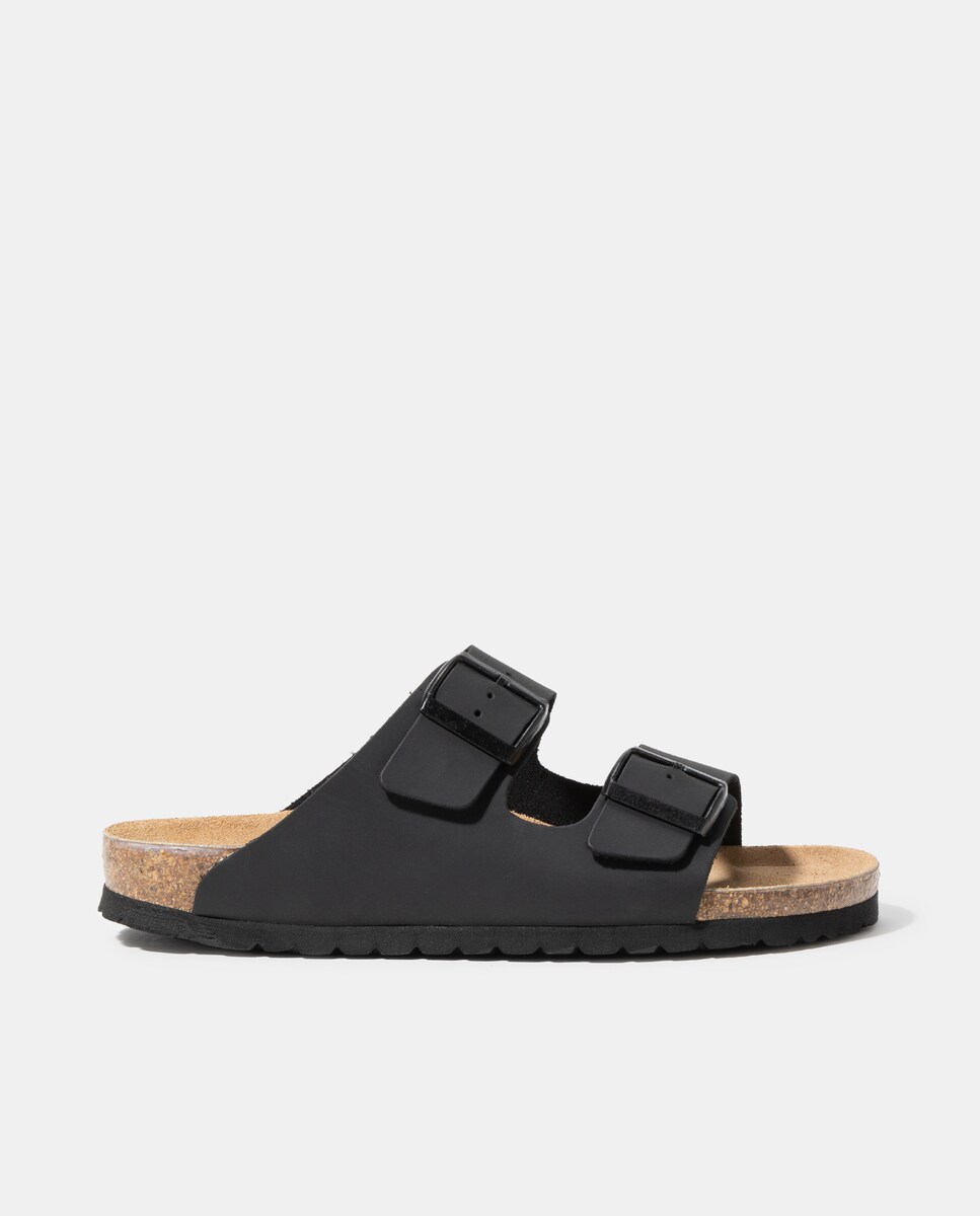 Sandalias de hombre Dustin de piel en negro con doble hebilla