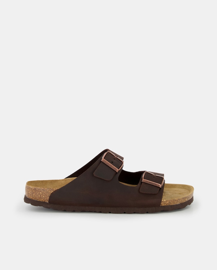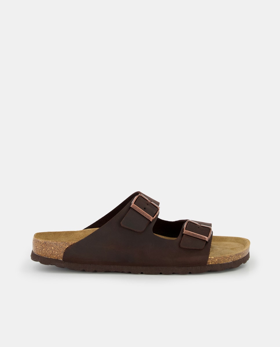 Sandalias de hombre en piel con doble hebilla