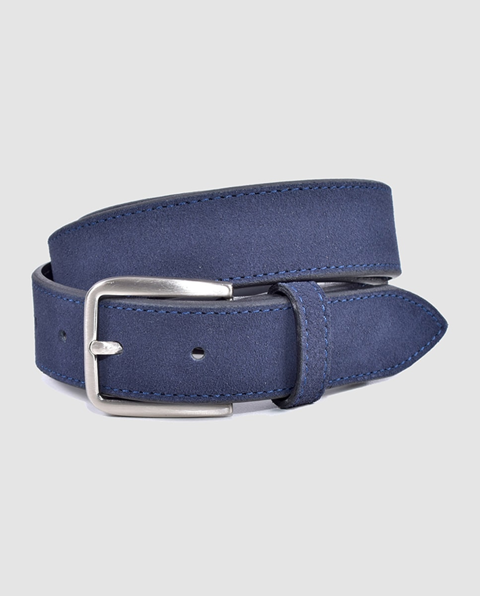 Cinturón de hombre en piel de serraje azul marino
