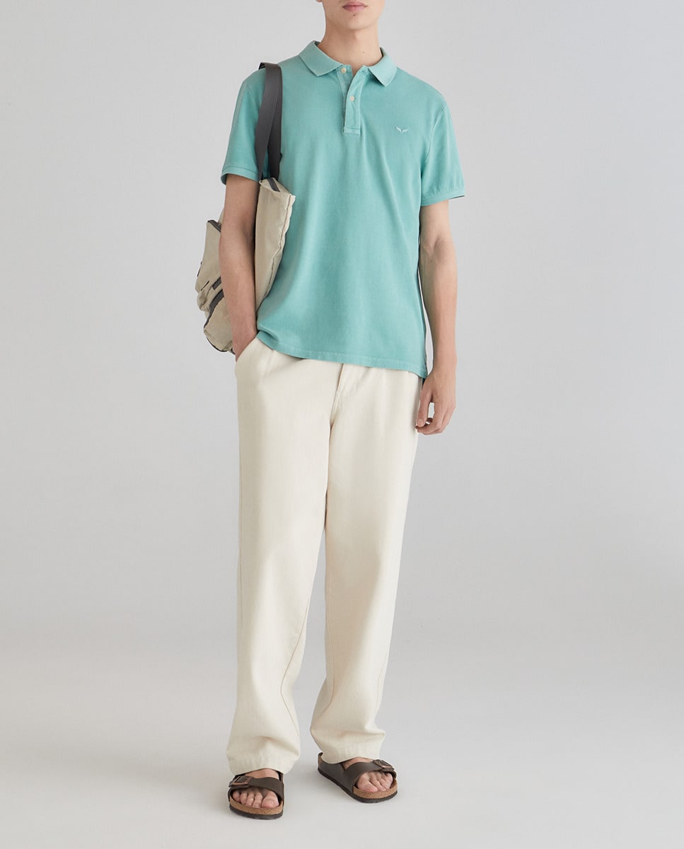 Polo básico manga corta garment dye de hombre