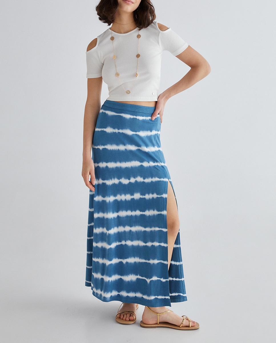 Falda larga de punto estampada