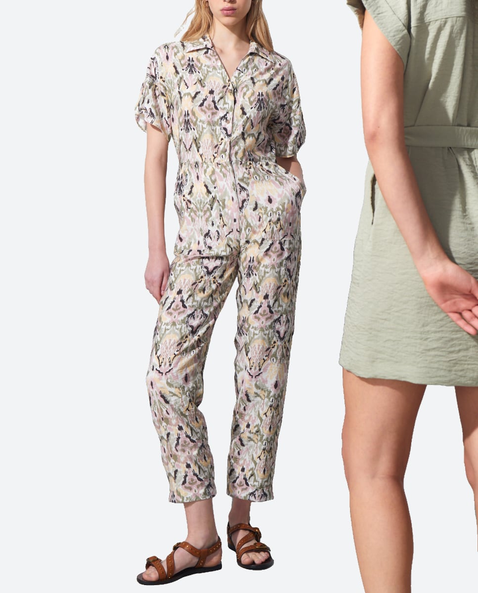 Mono de mujer manga corta cinturón rafia