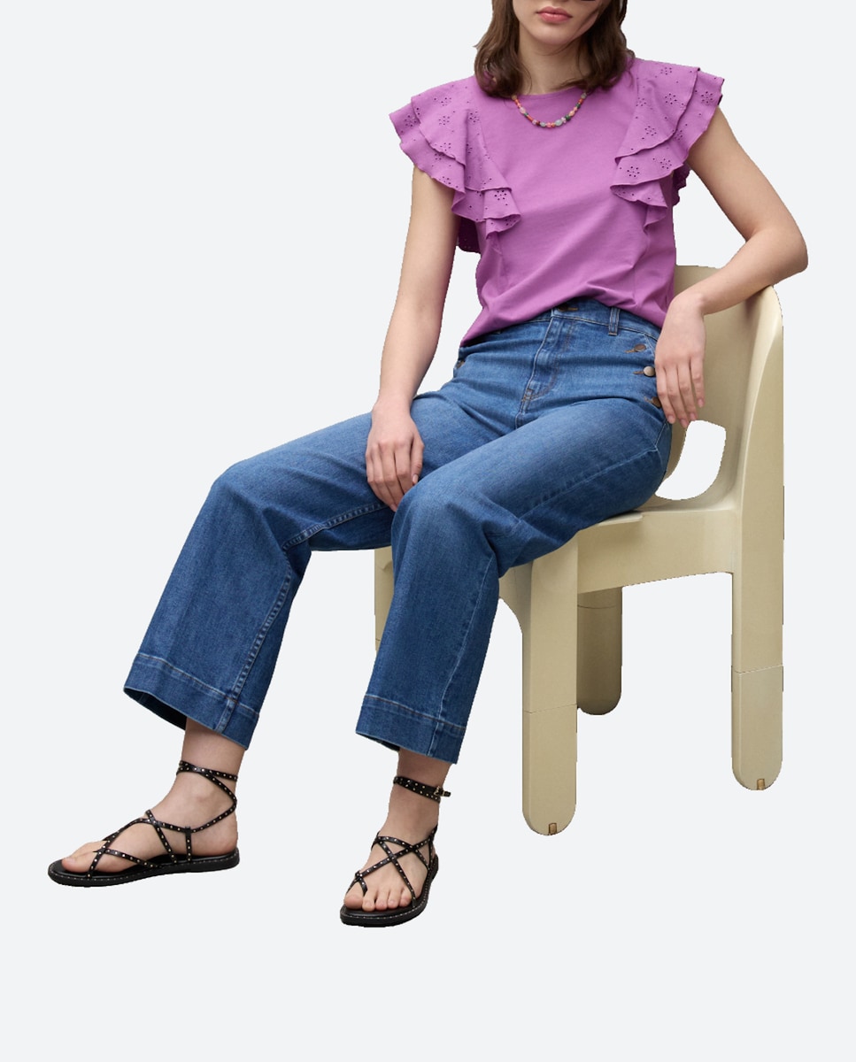 Camiseta de mujer volantes cuello redondo