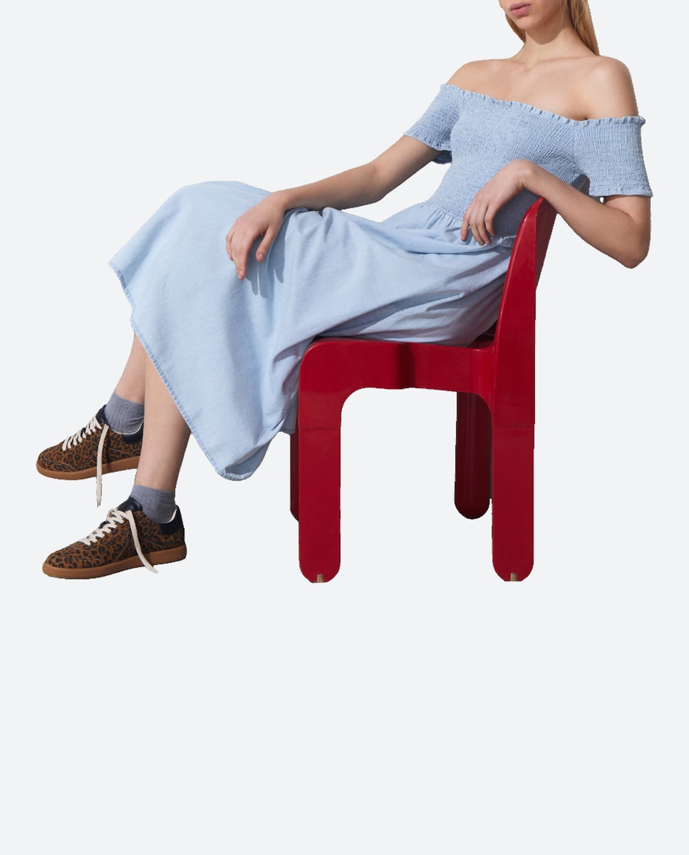 Vestido vaquero largo con gomas