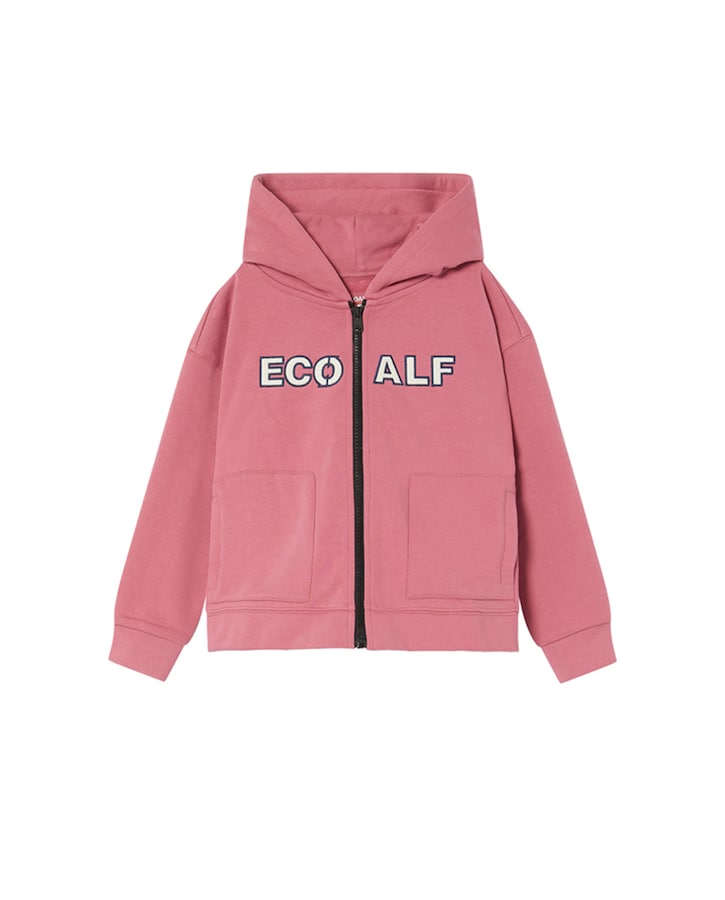 Sudadera niña con capucha, cremallera y estampado frontal