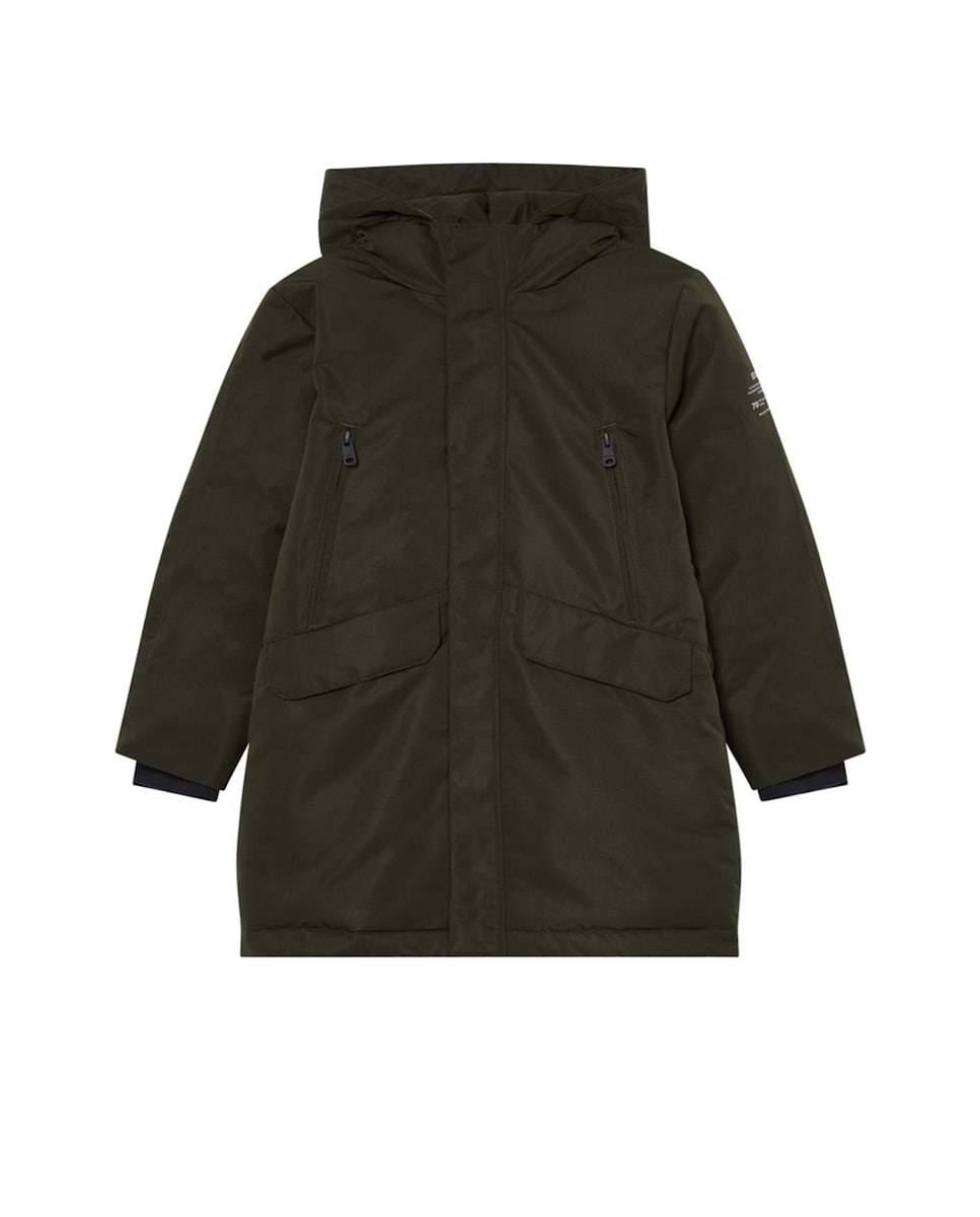 Chaqueta larga niño con capucha, cremallera y bolsillos laterales