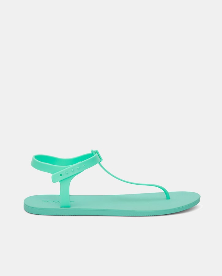 Sandalias planas de mujer con tira fina en forma de T y cierre de hebilla