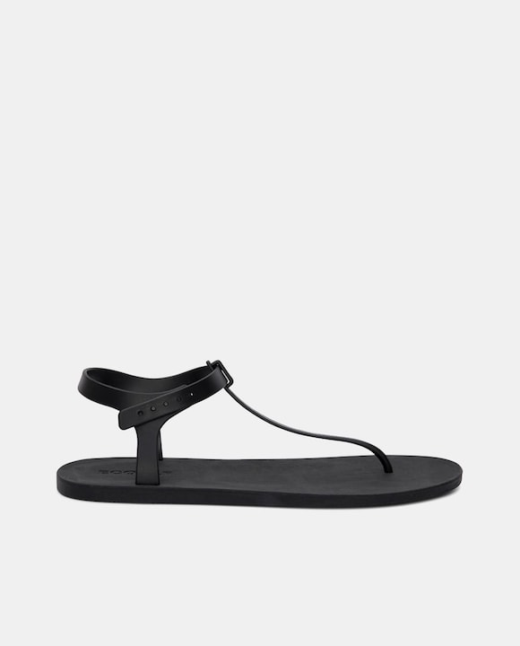 Sandalias planas de mujer con tira fina en forma de T y cierre de hebilla