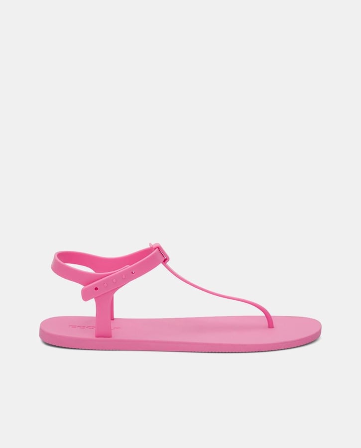 Sandalias planas de mujer con tira fina en forma de T y cierre de hebilla