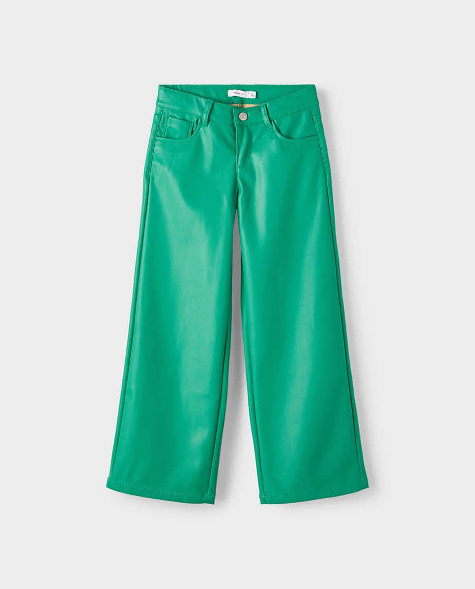 Pantalón de niña ancho efecto piel con cintura ajustable