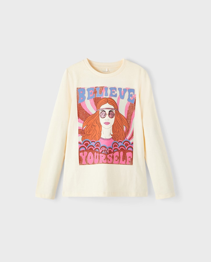 Camiseta de niña de manga larga con purpurina